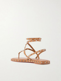 Christian Louboutin's 'Bombina' sandals are inspired by gladiator styles, but with the house's iconic twist. They're made in Spain and have leather straps that are embellished with silvery studs. The soles are lacquered with a recognizable splash of red. Size & Fit - Fits large to size, take a full size smaller than normal - Italian sizing Details & Care - Slight heel - Brown leather (Calf) - Buckle fastening ankle strap