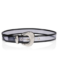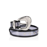 Maison Christian Louboutin's transparent Bubble belt combines PVC and patent black calf leather. Its striking rounded metallic silver buckle is a reference to the Minny Bubble line of women's shoes. - Adjustable length - Width: 3cm Product information Material: PVC and patent calf leather Color: Black Reference: 3255155B038