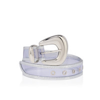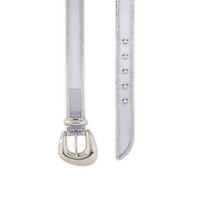 Christian Louboutin's transparent Bubble belt combines PVC and an aged silver-tone laminated calf leather. Its striking rounded metallic silver buckle is a reference to the Minny Bubble line of women's shoes. - Adjustable length - Width: 3cm Product information Material: PVC and laminated calf leather Color: Silver Reference: 3255157S082