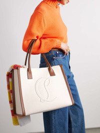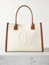 EDITORS'NOTES Christian Louboutin's 'By My Side' tote is perfect for long-haul flights and overnight stays. It's made from cotton-canvas trimmed with contrasting leather and lined in the same shade of red as the brand's iconic soles. There's plenty of space inside for a laptop, cardigan, plus an internal zipped pocket for securing smaller essentials. SIZE & FIT This item’s measurements are: - Handle Drop: 21.5cm / 8.5in - Depth: 19cm / 7.5in - Height: 31.5cm / 12.4in - Width: 39.5cm / 15.6in DETAILS & CARE - White cotton-canvas, brown leather - Two top handles - Internal zipped pouch - Clasp fastening at open top