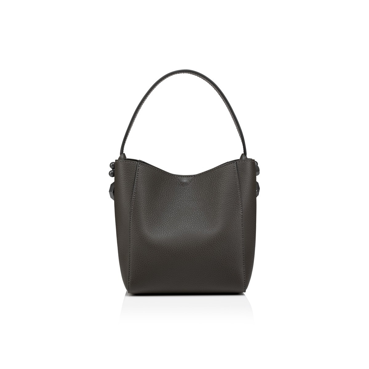The Cabachic in size mini is an elegant, practical tote with lightweight construction and a sleek appeal. A Maison Christian Louboutin signature appears on the bottom of the bag, while iconic spikes Couronne embellishments adorn the handle. This model is crafted in Rocket grey calf leather and rubber with tonal spikes. - 1 main compartment - Security hook - Adjustable, removeable leather strap - A 1.2 inch/ 13 cm handle - Dimensions: H 7 x L 6.2 x W 6.2 inches H 18 x L 16 x W 16 cm Product information Material: Calf leather Color: Rocket Reference: 3235311I636 Dimensions: 160mm x 160mm x 180mm Collection: Fall Winter 23