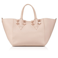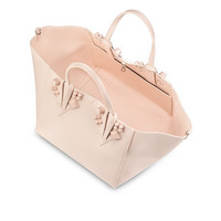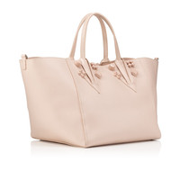 The tote bag Cabachic exudes urban appeal. Its sleek lines are enhanced with large crown pattern spikes. This timeless accessory is crafted in textured Empire Leche beige calf leather. - Carry by hand or wear over the shoulder with the adjustable strap - Interior flat pocket - Dimensions: H 230 x L 250 x W 250 mm Product information Material: Calf leather Color: Leche Reference: 1235321F612 Dimensions: 230mm x 250mm x 250mm Collection: Summer 23