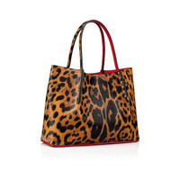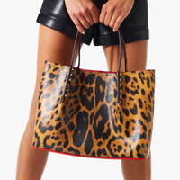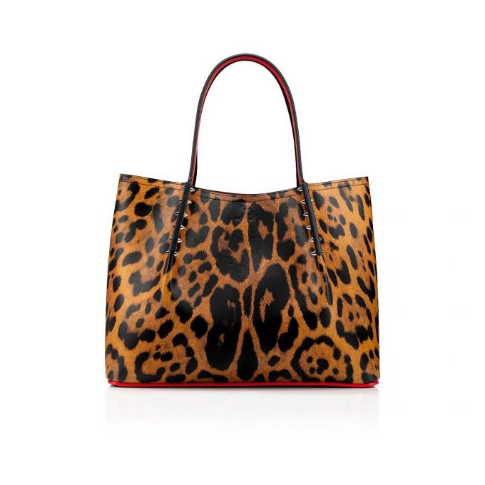 Echoing the exquisite lines of the iconic Cabata tote, the Maison Christian Louboutin’s Cabarock tote bag in size small is sophisticated, yet edgy. This model is crafted in buttery soft calf leather in Leo King Spicy, an animal print leather with orangey hues. Signature spikes adorn the handles. Can be carried in the hand or over the shoulder.- 1 large pocket with safety clasp- 1 flat pocket- Dimensions: H 260 x L 330 x W 120 mm PRODUCT INFORMATION Reference: 3225257C845 Color: BROWN Material: Calf leather Dimensions: 260mm x 330mm x 120mm Collection: Fall Winter 22