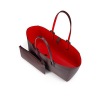 With its supple construction, the Cabata soft tote in size small showcases Maison Christian Louboutin's savoir faire. This model features the hallmarks of the iconic Cabata tote: signature silver metallic spikes encircling the handles, a bold sneaker sole and Loubi red lining. It is crafted in grained Amara burgundy calf leather and features a detachable pouch that can be carried as a clutch. - 2 handles, drop 7 inches/18.5 cm - Security hook - 1 main compartment - 1 detachable pouch with zip fastening and wrist strap for use as a clutch - Dimensions: - H 9.4 x L 13.4 x W 5.5 inches - H 24 x L 34 x W 14 cm Product information Reference: 12550458648 Color: Amara Material: Grained calf leather Dimensions: 240mm x 340mm x 140mm