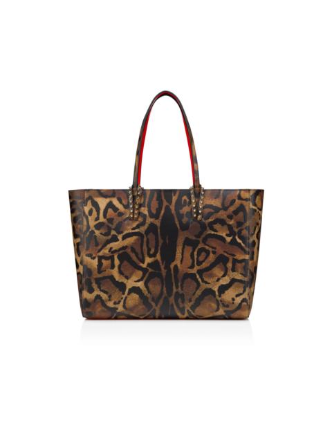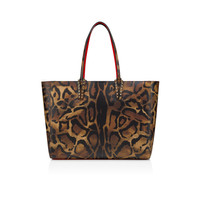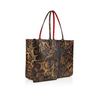 With its supple construction, the Cabata soft tote in size large showcases Maison Christian Louboutin's savoir-faire. This model features the hallmarks of the iconic Cabata tote: signature metallic spikes encircling the handles, a bold sneaker sole and Loubi red lining. It is crafted in Bengali animal print calf leather and features a detachable pouch that can be carried as a clutch. - Security hook - 1 main compartment - 2 handles 8.5 inch/21.5 cm H 11.4 x L 15.4 x W 6.3 inches H 29 x L 39 x W 16 cm Product information Reference: 32553523221 Color: Brown Material: Bengali printed hairy calf leather and spikes Dimensions: 290mm x 390mm x 160mm