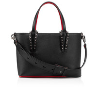 The Cabata E/W Mini is a reworked version of the Maison Christian louboutin’s classic Cabata tote bag. This sophisticated, yet edgy model features a technical, structured design. Details include flat handles looped through a contrasting smooth leather harness feature. This version comes in black grained calf leather highlighted with signature red. The leather join on the top of the bag is framed with colorful spikes Courones Boum Boum embellishments for an elegant punk twist. Product information Material: Calf leather Color: Black Reference: 1205054CM53 Dimensions: 6.7 x 9.3 x 3.1 inches Lining: GROSSGRAIN Collection: Summer 20