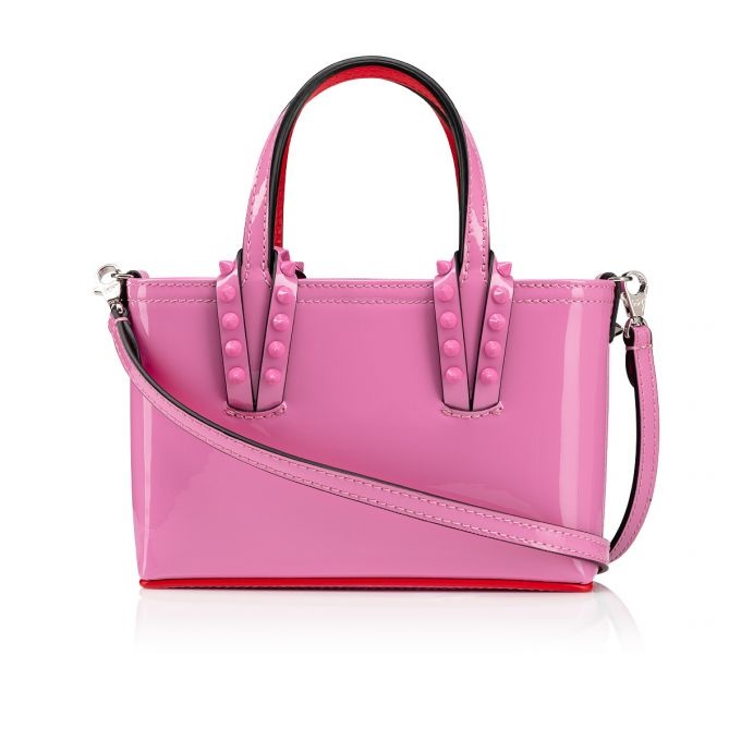 The Cabata E/W tote in size nano features a technical construction and a sophisticated design with flat handles looped through a leather harness. This model is crafted in gummy pink patent leather with signature Maison Christian Louboutin spikes at the bottom of the handles. - 2 detachable zipped pouches - 2 handles and 1 adjustable, removable strap - Security hook -Dimensions: H 120 x L 200 x W 50 mm PRODUCT INFORMATION Reference: 3225245P755 Color: GUMMY Material: Patent leather Dimensions: 120mm x 200mm x 50mm Collection: Fall Winter 22