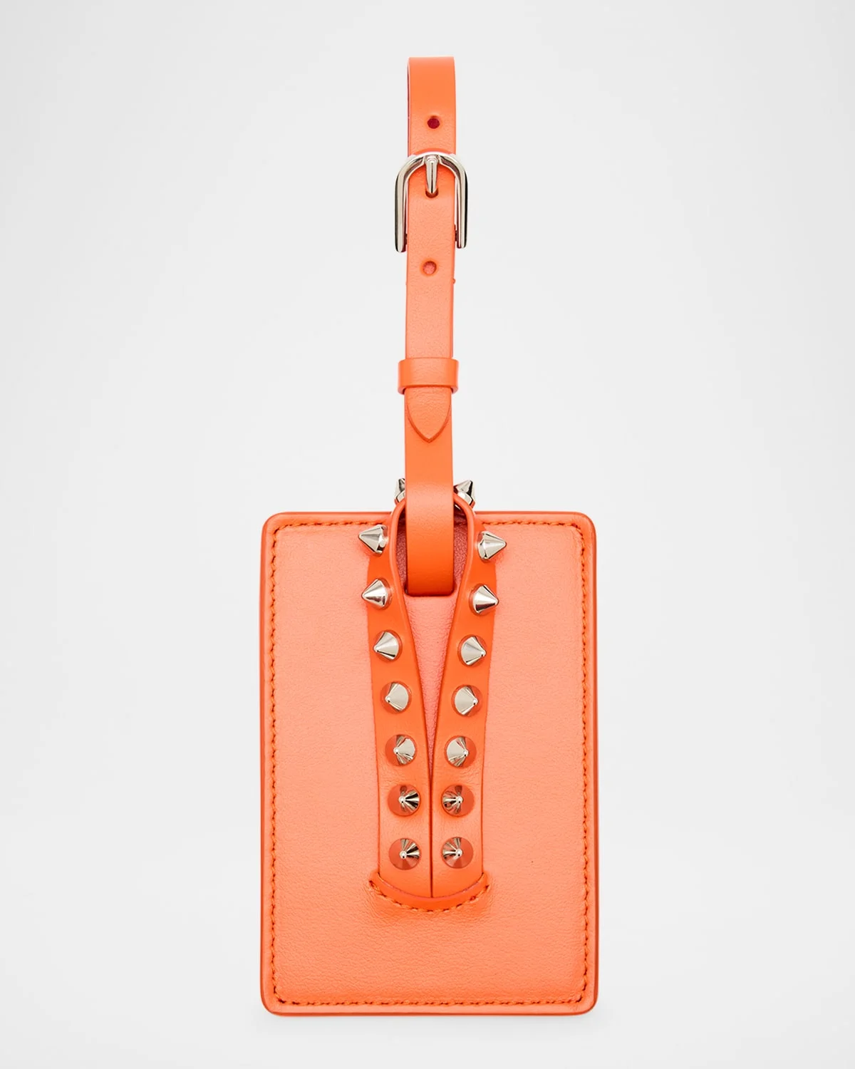 - Christian Louboutin "Cabata" luggage tag in smooth calf leather, studded with signature spikes - Adjustable buckle fastening - Approx. 3.9"H x 2.8"W - Made in Italy
