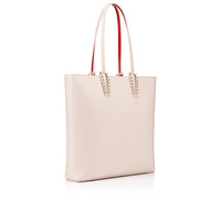 The Cabata tote showcases an array of Maison Christian Louboutin's signature details and features a secure zip fastening. This model is crafted in textured Leche beige calf leather with spikes around the bottom of the handles and an iconic sneaker sole. - 2 handles, 9.5 inch/24 cm drop - 1 main compartment - Zipped fastening - Dimensions: - H 14 x L 14 x W 3 inches - H 35 x L 35 x W 8 cm Product information Reference: 3245086W514 Color: Leche Material: Calf leather