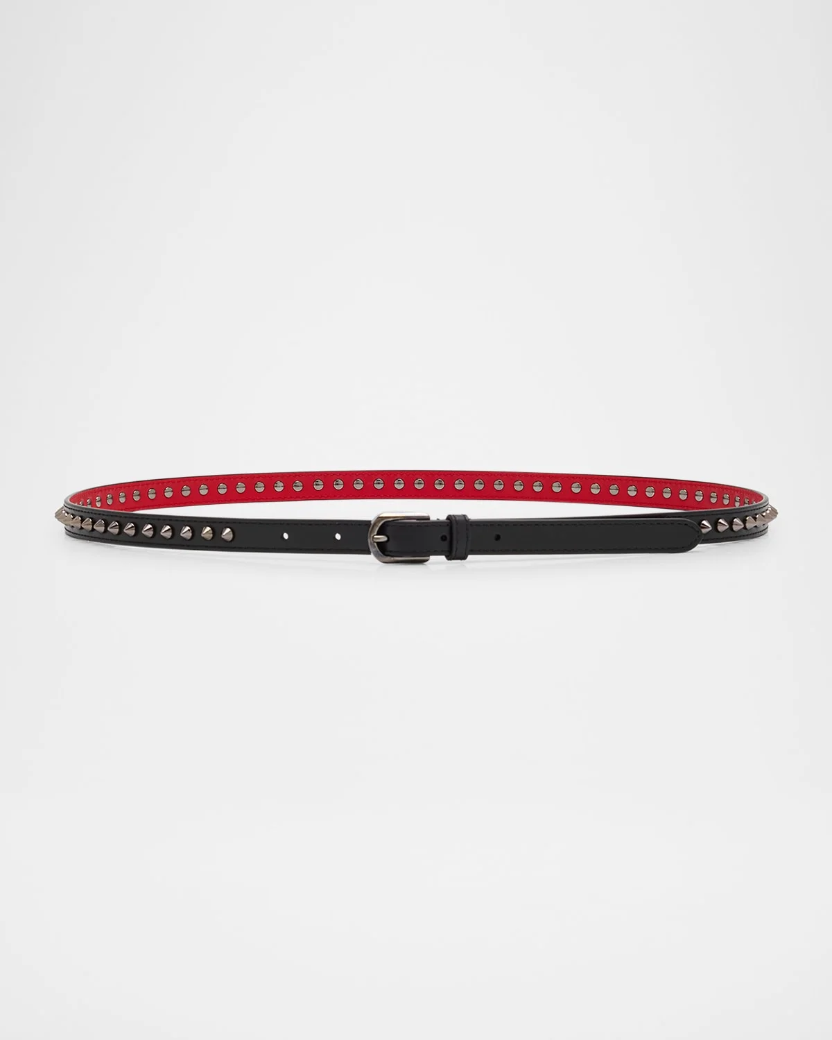 - Christian Louboutin "Cabata" calf leather skinny belt with Paris spikes - Adjustable fit - Signature red lining - Made in Italy
