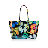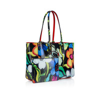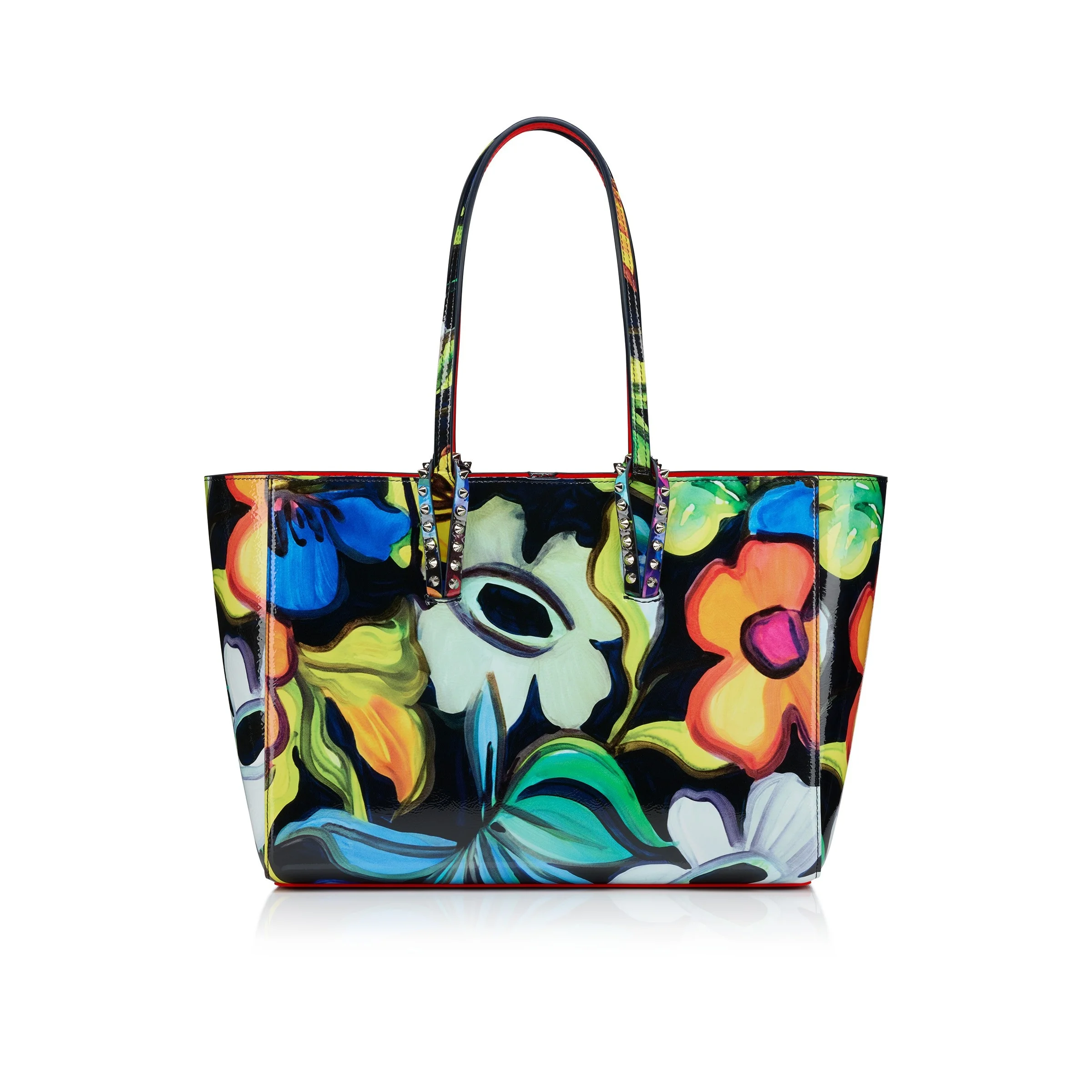 With its supple construction, the Cabata tote in size small showcases Maison Christian Louboutin's savoir faire. This model features the hallmarks of the iconic Cabata tote: signature metallic spikes encircling the handles, a bold sneaker sole and Loubi red lining. It is crafted from multicoloured Flower print patent naplak calf leather and features a detachable pouch that can be carried as a clutch. This material has a shiny, wrinkled effect, so the photo may look slightly different from the actual product. - Dimensions : H 34 x L 24 x W 14 cm - 2 18.5 cm handles, so it can be hand-held - Fastens with a safety clasp - Detachable coin purse secured by a press-stud Product information Reference: 3255178M251 Color: Multicolor Material: "Flower" printed naplak patent leather Dimensions: 240mm x 340mm x 140mm