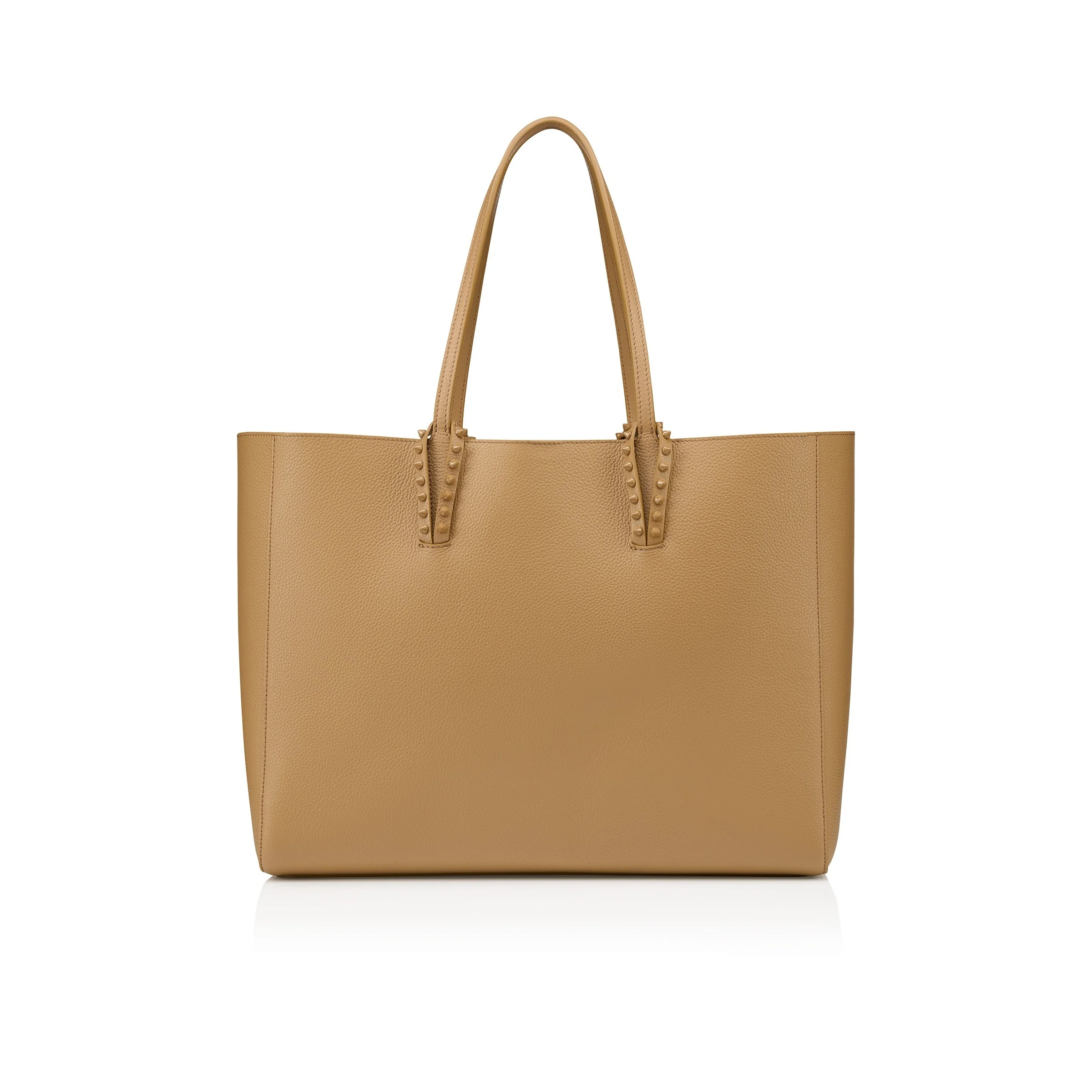 The timeless Cabata tote bag in size large has a refined style. This urban accessory is made from Lionne beige calf leather. It is adorned with tonal Maison Christian Louboutin signature spikes at the base of the straps. - Two 21.5 cm handles allow it to be carried over the shoulder - 1 main compartment with a hook - Dimensions: - H 29 x L 39 x W 16 cm Product information Reference: 1255044F486 Color: LIONNE Material: Calf leather Dimensions: 290mm x 390mm x 160mm