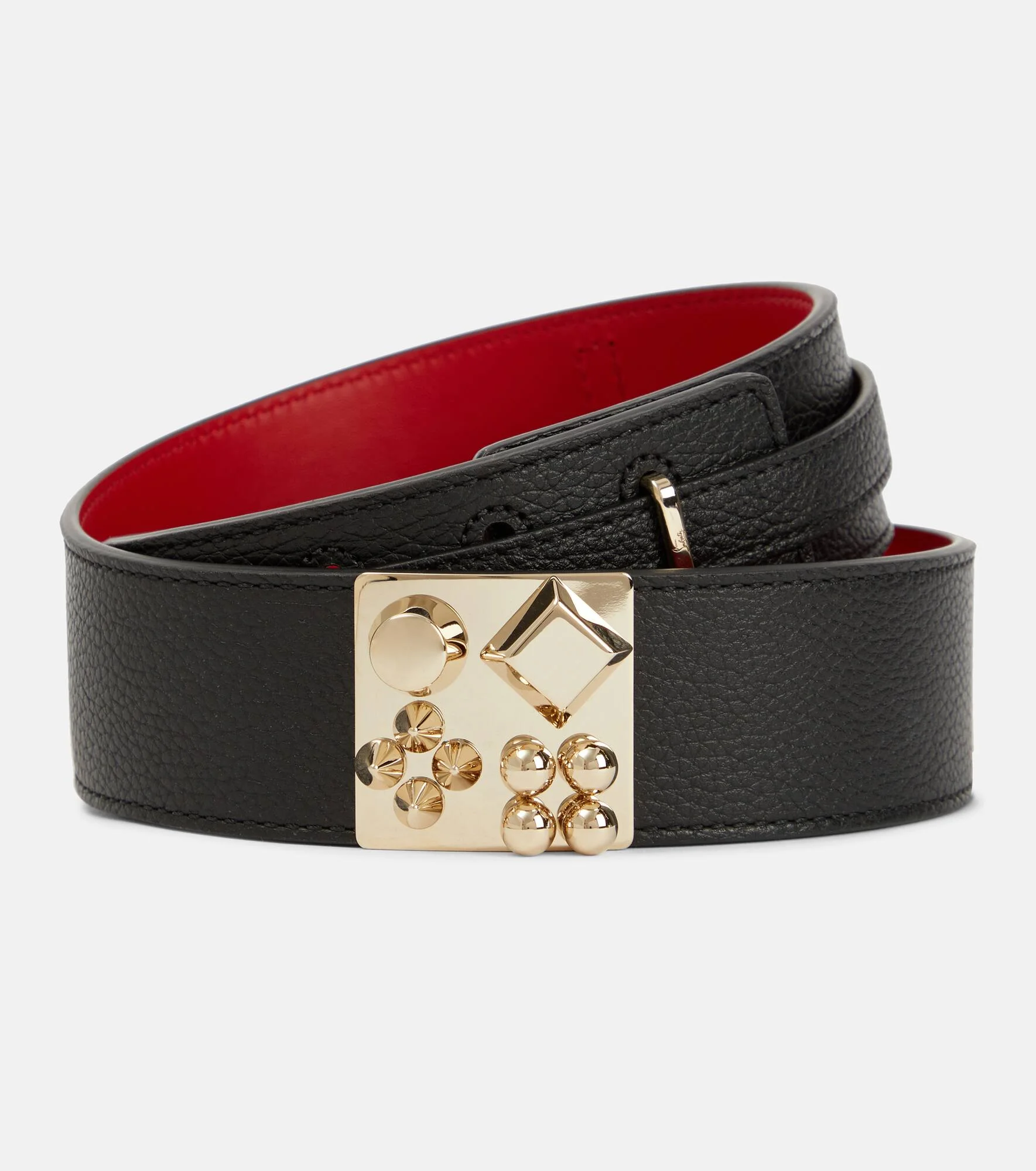 Christian Louboutin's Carasky belt will put a tough-luxe spin on your looks. It's made in Italy from black leather and finished with logo insignia and stud hardware. - material: calf leather - trim: brass - internal details: leather lining - colour of fastening: pale gold - adjustable belt strap - buckle fastening - Made in Italy - comes with dust bag - comes with a box - Designer colour name: Black/Gold