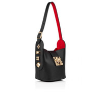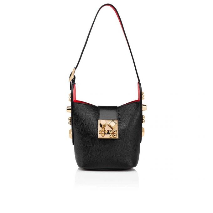 Inspired by jewels and crowns, the Carasky bucket bag in size mini has striking contemporary lines. This Maison Christian Louboutin accessory is made from black grained calf leather. The signature gold spikes enhance its sophisticated style. With a handle and a shoulder strap, it can be worn over the shoulder or across the body, or be carried by hand. - adjustable handle and removable strap- inside pocket- dimensions: 180 x 160 x 12 mm PRODUCT INFORMATION Reference: 3225004CM6S Color: Black Material: Calf Dimensions: 180mm x 160mm x 120mm Collection: Fall Winter 22
