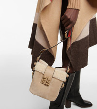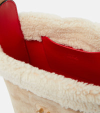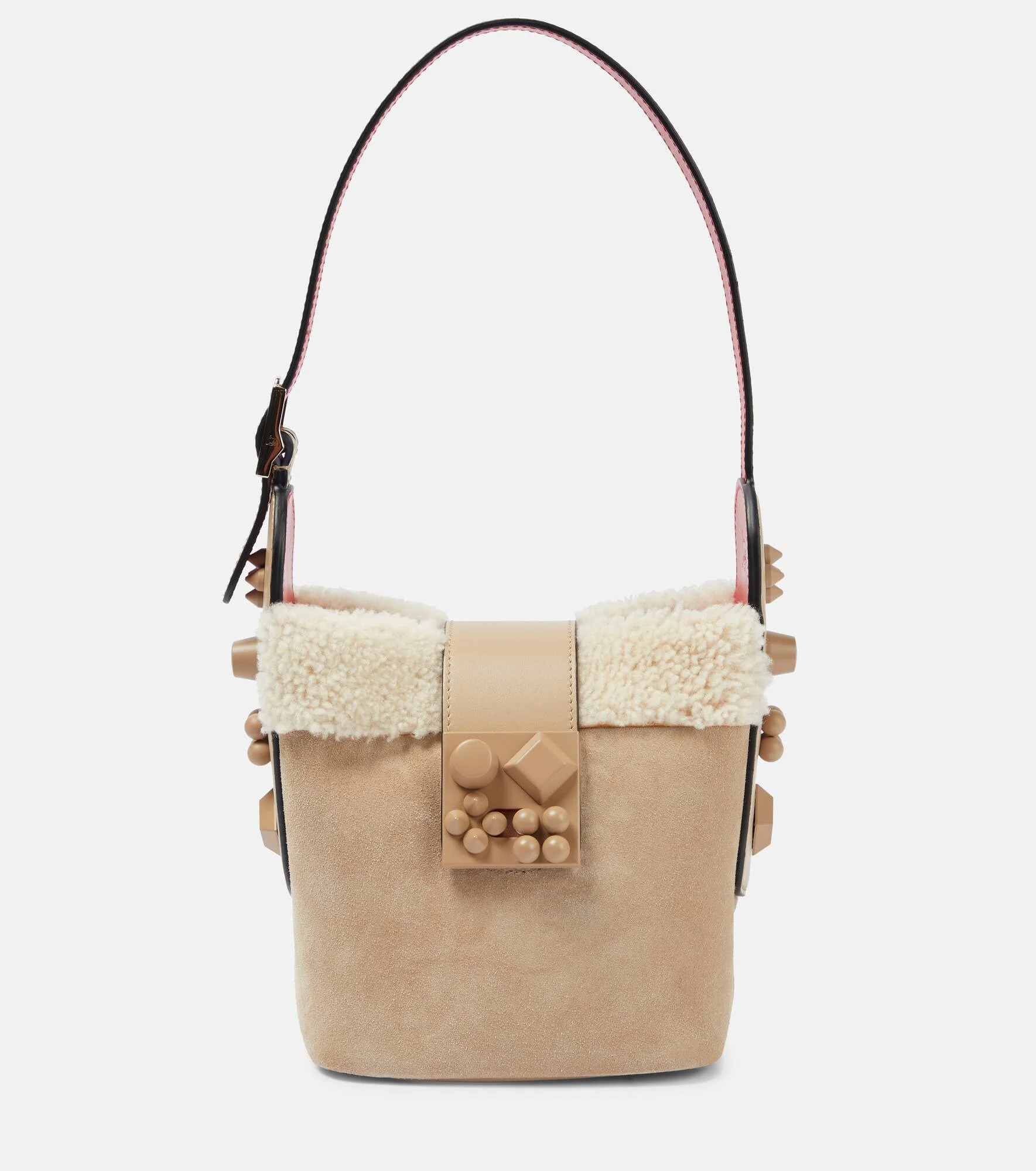 Christian Louboutin extends its Carasky line with the Mini bucket bag. Made from smooth suede with a plush shearling trim and brand-signature lipstick-red lining, this style is studded with tonal hardware for a contemporary look. - material: cow leather - trim: fabric - internal details: leather lining, internal slot pocket - detachable, adjustable shoulder strap, top handle - push-stud fastening tab, snap-clasp fastening - Made in Italy - comes with dust bag - Designer colour name: Atlas/Atlas/Atlas Mat size & fit - Height 17cm-6.5" - Width 15,5cm-6" - Depth 11,5cm-4.5" - Min. length of handles 47cm-18.5" - Max. length of handles 53cm-21" - Min. length shoulder strap 109cm-43" - Max. length shoulder strap 115cm-45.5"
