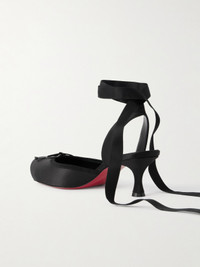 Christian Louboutin's 'Cassia' pumps are inspired by the beauty of ballet. Made from satin, they're trimmed with grosgrain and have long ribbons that wrap around the ankle. The square toes reference pointe shoes - with the comfort and support of 55m heels.
