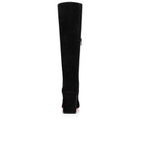The Cavalika is inspired by the clean lines of the riding boot and stands out for its slightly protruding 85 mm square heel. The timeless elegance of Maison Christian Louboutin comes to the fore in this black suede calfskin boot with elasticated interior closure that enhances the contours of the leg. Its discreet finishes express a sophisticated design and expertise.