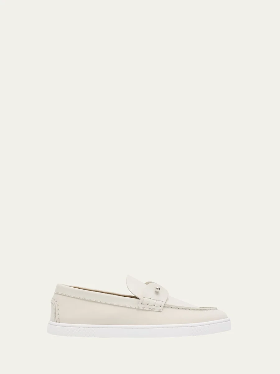 Christian Louboutin "Chambeliboat Donna" boat shoes crafted of nubuck calf leather Flat heel Round apron toe Metal collar pin Slip-on style Rubber outsole Lining: Leather Made in Italy Online Inquiries: BGS21_X6QRA| Store Inquiries: #4889663