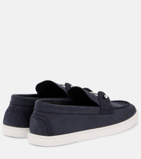 The Chambeliboat loafers are Italian-made from soft, smooth leather and topped with minimalist, silver-toned hardware. Finished with Christian Louboutin's iconic red soles, this pair makes every step you take a sophisticated one. Product Details - Upper: leather - Lining: leather - Sole: leather insole, signature red rubber sole - Toe shape: almond toe - Made in Italy - Includes: shoe box, dust bags - Designer color name: Navy - Item color: blue - Hardware color: silver - Item number: P01016239 Size & Fit - True to size - European sizes - 2cm-1" platform (size EU 38)