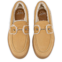 The Chambeliboat Shearling women's boat shoe has a sleek silhouette. This elegant loafer has a supple construction and is crafted entirely from Terra beige reversed calf leather with contrasting shearling trim and insole. The tongue features a metal collar pin, showcasing Maison Christian Louboutin's creative flair. This light, flexible and urban model is set on a rubber sole. Product information Reference: 1260314C562 Color: Terra Material: Shearling