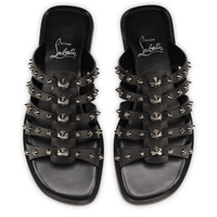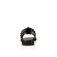 The Charja mule has a captivating and elegant style inspired by the city of Sharjah in the United Arab Emirates. Crafted from black waxed leather, this Maison Christian Louboutin mule is trimmed with the brand's signature silver-tone spikes, this time in two sizes. This model features an 'Everlasting Red' sole thanks to an innovative coating technique to ensure resistance and lasting vibrancy for our signature Louboutin red. Product information Reference: 3250257B439 Color: Black Material: Waxed calf leather