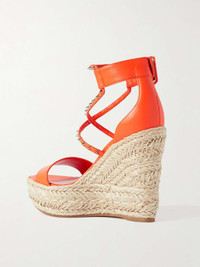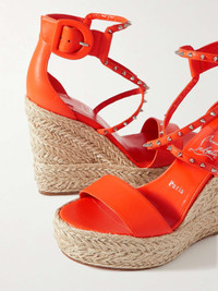 EDITORS'NOTES Christian Louboutin's 'Chocazeppa' sandals are the kind you'll wear all summer long. Made in Italy from soft leather, they're punctuated with spikes and have jute wedge heels. Match your pedicure to the signature red soles. SIZE & FIT - Fits true to size, take your normal size - Italian sizing DETAILS & CARE - Wedge heel measures approximately 120mm/ 5 inches - Orange leather (Calf) - Buckle-fastening ankle strap - Designer color: Vitamin