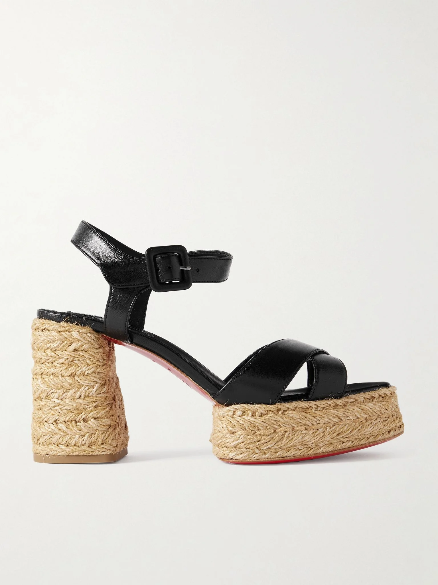 Christian Louboutin's 'Calakala' sandals have classic espadrille soles with a little lift. They have crossover straps made from black leather and fasten with adjustable buckles. Wear yours with summer dresses, cropped pants and everything in between. Small to size. See Size & Fit notes. Size & Fit - Fits small to size, take a full size larger than normal - Italian sizing Details & Care - Heel measures approximately 85mm/ 3.5 inches - Black leather - Buckle-fastening ankle strap