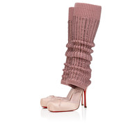 The strikingly elegant Cassia Annmac hybrid pump combines the Cassia look and a tonal knitted legwarmer-style sleeve adorned with tone-on-tone strass. This Maison Christian Louboutin shoe is crafted from Poupee pink crepe satin with tonal lining, and set on a 100 mm stiletto heel. Product information Reference: 1260130P637 Color: Poupee Material: Crepe satin and mesh Heel Height: 100 mm