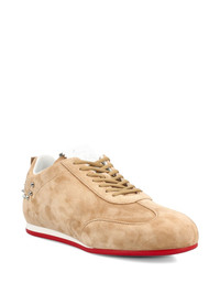 Eleonora studs-detail sneakers Highlights - Beige - Studs - Red sole - Lace-up fastening Made In Italy Composition Outer: Calf Suede 100% Lining: Kid Leather 100% Sole: Rubber 100%