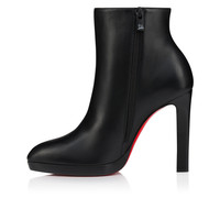 The Fannylove Booty blends simplicity with impact. This elegant ankle boot features a discreet platform for added comfort, an almond-shaped toe and a 120 mm sculptural heel that appears slim from the back yet bold and structured from the side, revealing a glimpse of Loubi red. It is crafted in all-over black Cordia calf leather with a padded insole. Product information Reference: 1260185CM53 Color: Black Material: Calf leather Heel Height: 120 mm
