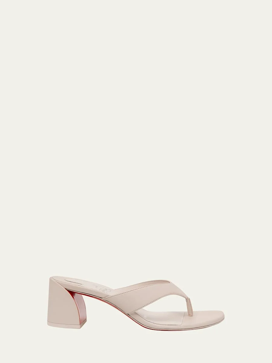 Christian Louboutin "Jane Tonga" heeled leather flip flop sandals 2.25 in / 55 mm block heel Thong strap Slide style Signature Louboutin red leather outsole Made in Italy Online Inquiries: BGS21_X6UBE| Store Inquiries: #4970697