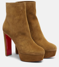 Christian Louboutin’s Loo Booty 130 ankle boots are made from suede with an almond toe and inner zip closure. Set on a striking platform and block heel, the design reflects the brand’s bold sculptural codes. Product Details - Upper: calf leather (suede) - Lining: leather - Sole: leather insole, signature red leather sole - Toe shape: pointed toe - Made in Italy - Includes: shoe box, dust bag - Designer color name: Bronzo - Item color: green - Closure: zipped side - Item number: P01119993 Size & Fit - True to size - European sizes - 13cm-5" heel (size EU 38) - 4cm-1.5" platform (size EU 38)
