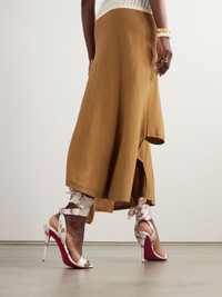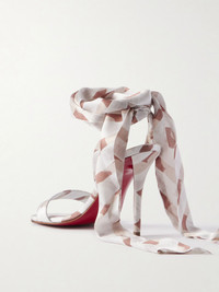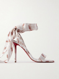 Christian Louboutin's 'Miss Z' sandals are sure to earn you plenty of compliments. Made from satin in an abstract pattern, they have scarf-inspired ties at the ankle and 100mm stiletto heels. The 'Everlasting Red' sole is designed to resist fading. Size & Fit - Fits true to size, take your normal size - Italian sizing Details & Care - Heel measures approximately 100mm/ 4 inches - Off-white, beige and blush satin - Ties at ankle