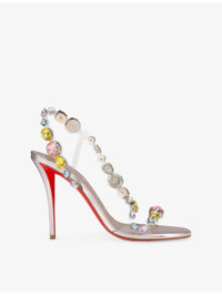 PRODUCT DETAILS - 41% polyurethane, 59% calf leather - Heel height: 3.6in/ 100mm - Made in Italy - True to size - This style features an 'Everlasting red sole,' thanks to an innovative coating technique that ensures resistance and lasting vibrancy for the signature Louboutin red. - Christian Louboutin strongly recommends that its customers consult a professional in leather care or a shoemaker for specific care advice. In order to keep your shoes in good condition, the following leather care is recommended: - Keep the leather area clean and dry using a dry, soft cloth - Always store your products away from light and heat - Protect your leather goods from rain and moisture - Store your products in the Christian Louboutin dust bag provided - Avoid contact with abrasive surfaces - Regrettably we are unable to accept in-store returns on Christian Louboutin orders - PLEASE NOTE: Due to the delicate nature of the red soles we ask that the shoes be tried on carpeted flooring. If not, they may not be suitable for return Ref: R04556498