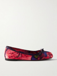 Mamadrague bow-detailed floral-print satin-crepe ballet flats Red