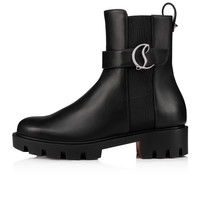 The CL Chelsea Booty Lug is a contemporary boot with urban lines. It is crafted entirely in ingrassato black calf leather and has an elasticated panel at the sides. This sleek boot features a lug sole and a tongue adorned with a silver metal CL monogram. An iconic style, the heel tab showcases a Maison Christian Louboutin signature spike. Product information Material: Calf leather Color: Black Reference: 1230304BK01 Collection: Summer 23