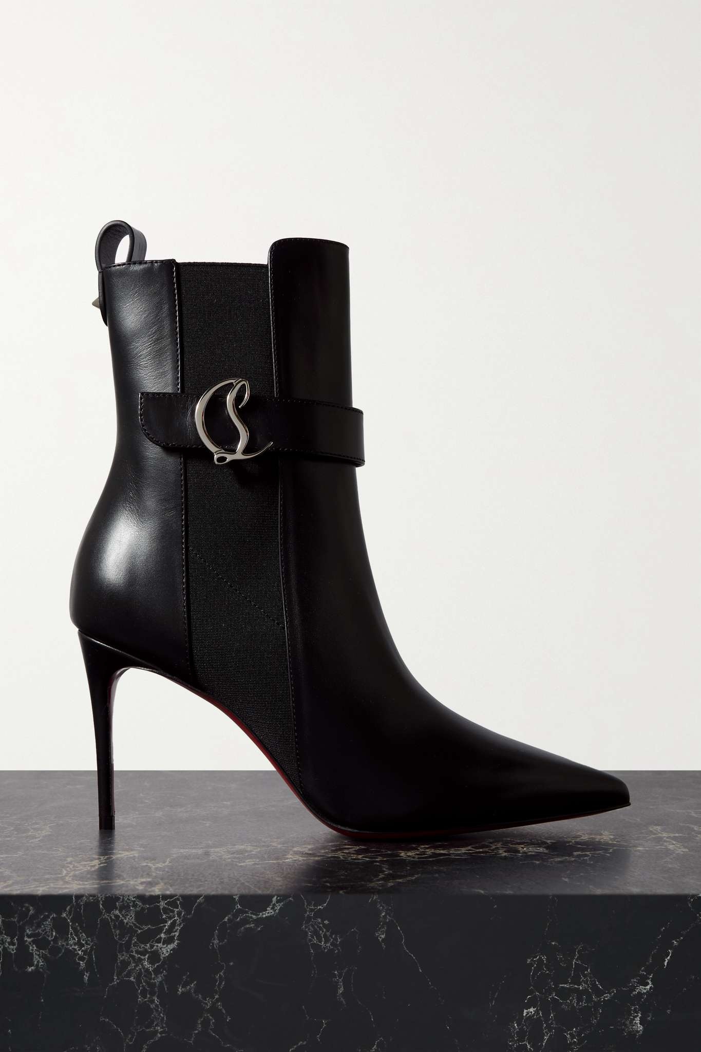 EDITORS'NOTES Christian Louboutin's ankle boots are instantly iconic thanks to the lacquered red soles. They've been made in Italy from soft leather and have silver-tone 'CL' logos. SIZE & FIT - Fits true to size, take your normal size - Italian sizing DETAILS & CARE - Heel measures approximately 85mm/ 3.5 inches - Black leather (Calf) - Pull on