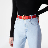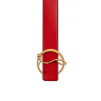 Refined and timeless, the CL Logo belt crafted in red calfskin encircles the waist with finesse. Its monogrammed antique gold buckle and iconic red leather lining mark the unique savoir-faire of the Maison Christian Louboutin. -35mm-wide leather strap - Gold metal buckle Product information Reference: 1205111R419 Color: Red Material: Calf leather Lining: Leather Collection: Fall Winter 21