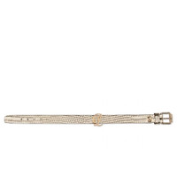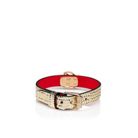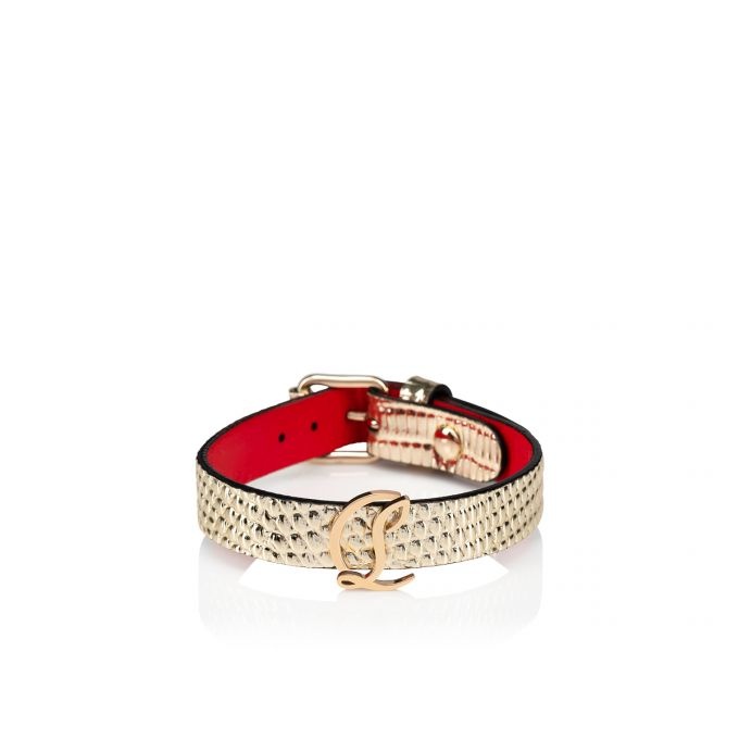 The delicate CL Logo bracelet showcases Maison Christian Louboutin's elegance. Crafted in gold calf Lizzy embossed lizard-effect leather, it features a contrasting gold monogram. A sophisticated design enhanced with delicate finishing touches. - Iconic Loubi red interior - Can be adjusted to fit with the metallic loop - Width 10 mm PRODUCT INFORMATION Reference: 3225444PL12 Color: GOLD Material: Calf leather Dimensions: 10mm x 200mm Collection: Fall Winter 22