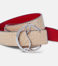 Inflect your everyday look with a subtle sense of brand recognition courtesy of Christian Louboutin's reversible leather belt. Crafted in Italy from croc-effect beige leather, it features a signature red-coated reverse and is illuminated by the label's CL logo in shining silver-tone hardware. - material: calf leather - internal details: leather lining - colour of fastening: silver - Made in Italy - comes with dust bag - Designer colour name: Nougat/Silver