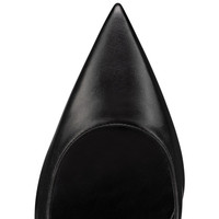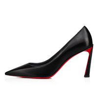 The Condora pump has a pointed toe like a bird's beak. This sophisticated style in black leather has a daring low-cut vamp revealing the foot. It has an 85 mm slanted heel, showcasing Maison Christian Louboutin's innovative creativity. With its sleek lines playing with graphic elements, this loafer exudes timeless elegance. Product information Material: Leather Color: Black Reference: 1230134B439 Heel height: 85 mm Collection: Summer 23