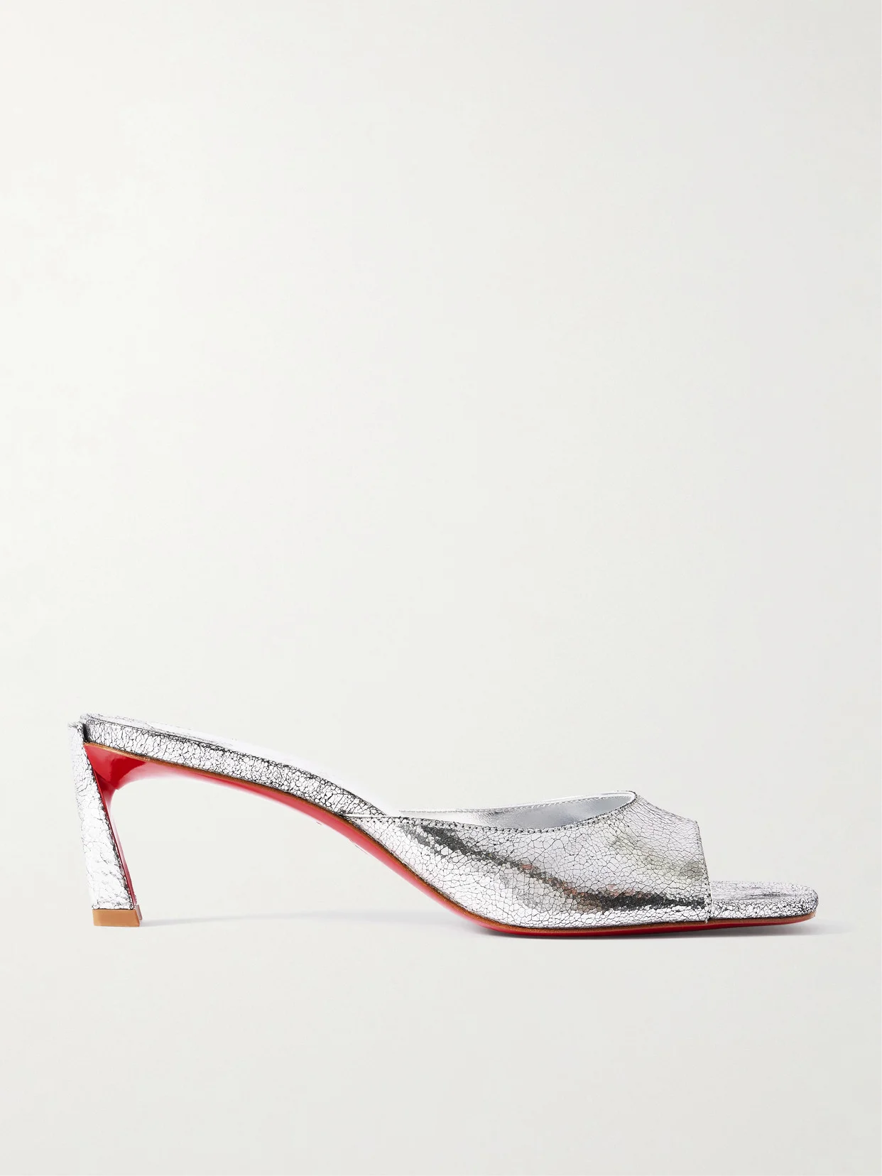 Christian Louboutin's 'Condora' mules will shine bright at your next event. Made in Italy from metallic cracked-leather, they have squared toes and are set on 55mm heels. Wear them with a dress or sleek tailoring.