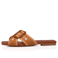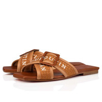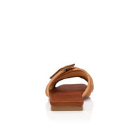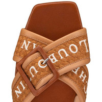 Showcasing graphic lines, the Crossimule features a sophisticated square toe and heel. Its sleek silhouette incudes two crossed straps in Cuoio brown calf leather, embroidered with the creator's name and adorned with a large square leather clasp. With its delicate finishing touches, this summery model is a testament to Maison Christian Louboutin's creativity. PRODUCT INFORMATION Reference: 3220446J754 Color: BROWN Material: Calf Collection: Fall Winter 22