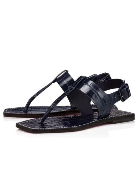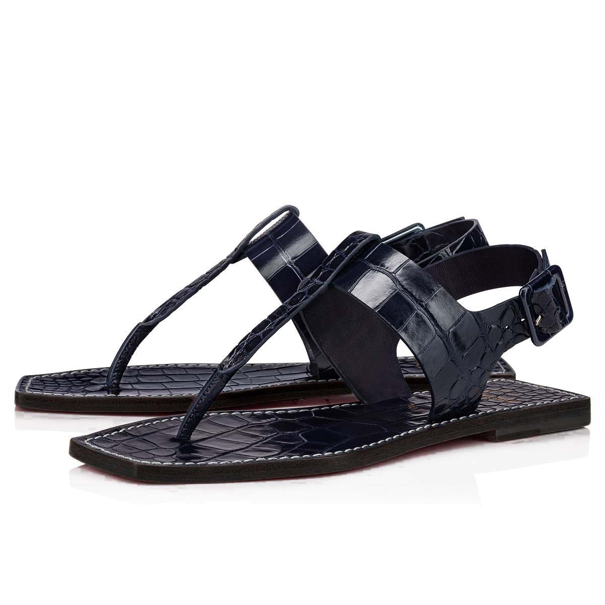 The Cubongo sandal is characterised by a clean design and has straight, slightly masculine lines. It is dressed with a thick upper in dark blue alligator-embossed calfskin and mounted on a square-end wooden sole. A model with an assertive personality that nonetheless evokes a light summer feeling and the emblematic know-how of Maison Christian Louboutin.