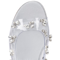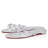 A new twist on the Degrasstrass pump, the Degraqueenie mule features a very slight heel, transparent PVC upper, and elegant open toe. As part of the Strass Up collection, this modern model is adorned with Maison Christian Louboutin's latest take on jewels and strass - bigger, bolder crystals, each handsewn onto the PVC upper. The heel and lining are crafted in silver nappa laminata leather. Product information Material: PVC Color: Silver Reference: 3230301S339 Collection: Fall Winter 23