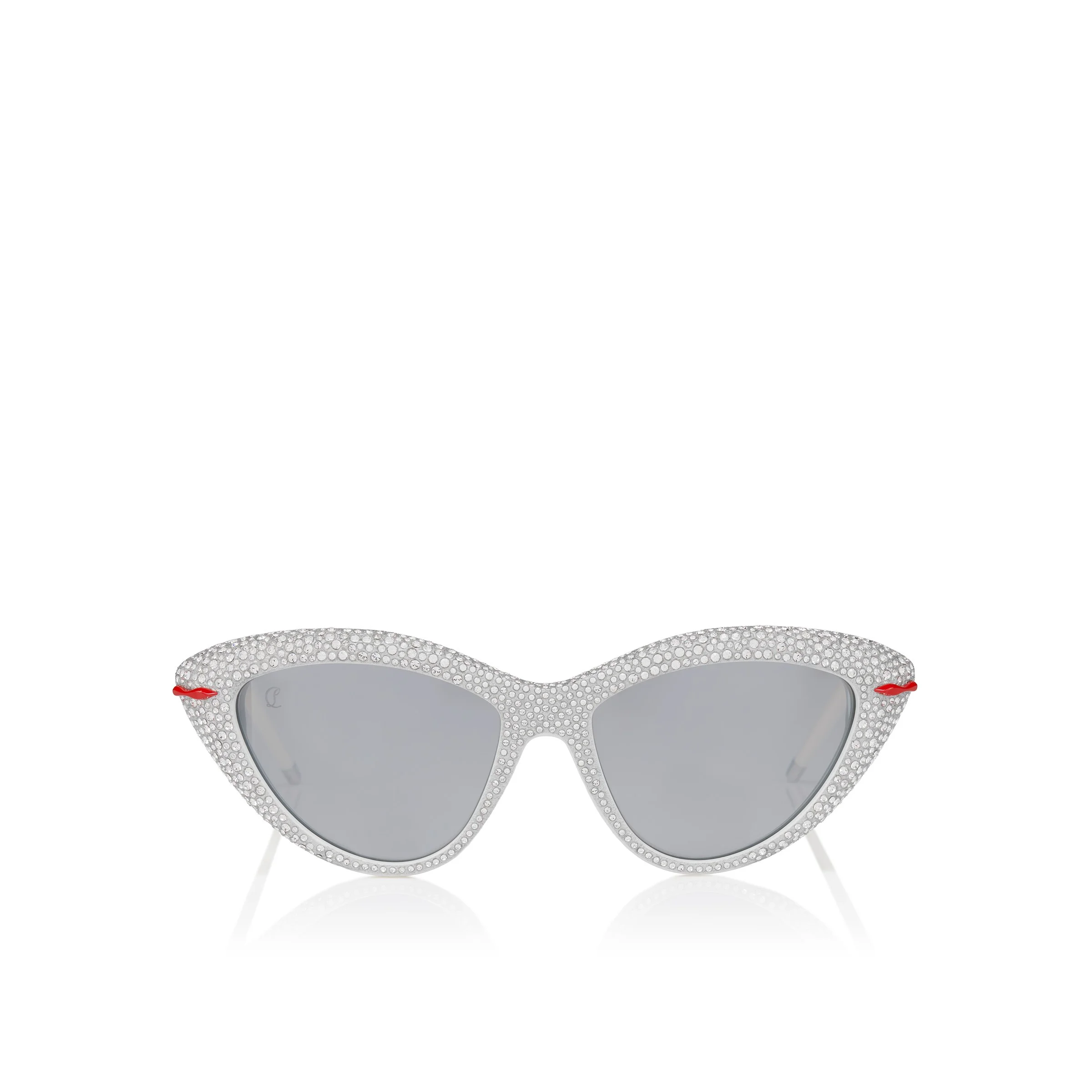 The Diamond Kate LB0031 sunglasses, from an exclusive edition, are inspired by the iconic Kate from Louboutin’s very first collection. This best-seller not only marked the beginning of the brand’s journey, but also served as the creative foundation for this capsule edition. Crafted in shiny white acetate, reimagined with a festive twist, these timeless designs return embellished with dazzling crystals to capture the spirit of the holidays, combined with high-performance Zeiss smoke mirrored lenses that offer exceptional quality, comfort, and durability for the Christian Louboutin collection. Dimensions: - Lens width: 56mm - Bridge: 17mm - Temple length: 135mm Made in Italy. Product information Reference: 1265190K747 Color: White smoke Material: Acetate