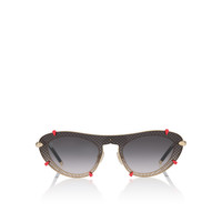The Dolly LB0007 sunglasses feature an oval-shaped design that blends boldness and sophistication. This elegant metal version features an elaborately designed front, in which the full wraparound lens is embedded in the metal frame reproducing the brand's iconic palmette pattern. The red inserts at the corners add a signature touch recalling the iconic Christian Louboutin red soles. This model is made in a pale gold color with gradient smoke lenses. High-performance Zeiss lenses offering exceptional quality comfort and durability for Christian Louboutin collection. Made in Italy. Product information Reference: 1255349K195 Color: Gold Material: Metal Temple length: 135 mm Category of filtration: 2