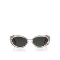 The Dolly LB0030 sunglasses from Eyewear Collection 2 are inspired by the iconic Christian Louboutin Dolly Pump and a touch of Art Deco. The frames are a tribute to lightness, embodying a new level of femininity and grace. This model features a shiny dark ruthenium metal style with an oval shape. A palmette pattern embellishes the frontal profile grabbed by tiny red soles signifier combined with the high-performance Zeiss smoke lenses that offer exceptional quality, comfort, and durability for the Christian Louboutin collection. This model is an online exclusive. Dimensions: - Lens width: 54mm - Bridge: 19mm - Temple length: 135mm These frames are suitable to add prescription lenses. Made in Italy. Product information Reference: 1265189K744 Color: Dark ruthenium Material: Metal Lens width: 54 mm Bridge length: 19 mm Temple length: 135 mm Category of filtration: 3
