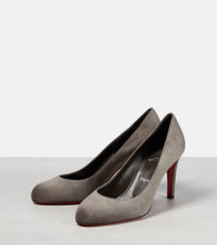 Made of tactile gray suede, these almond-toe Pumppie pumps have slim 85mm heels. Finished with Christian Louboutin's iconic red soles, this pair makes every step you take a sophisticated one. Product Details - Sole: leather insole and sole - Upper: leather - Toe shape: almond toe - Made in Italy - Comes with a box - Item number: P00827889 Size & Fit - True to size - European sizes - 8,5cm-3.5" heel (size EU 38)