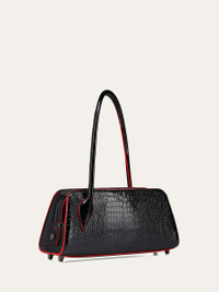 Christian Louboutin "Eloise" shoulder bag in glossy croc-embossed calf leather, elegantly trimmed with signature red edges Rolled shoulder strap Two-way zip top closure Interior, four card slots and one slip pocket Signature red interior Feet protect the bottom of the bag Approx. 5.9"H x 11"W x 3"D Made in Italy Online Inquiries: BGS21_V6JG9| Store Inquiries: #5017383